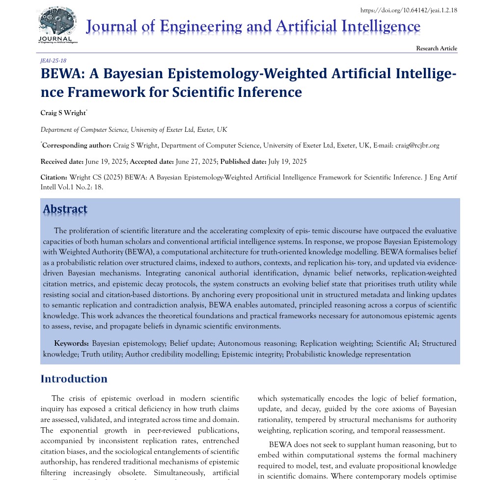 BEWA: A Bayesian Epistemology-Weighted Artificial Intelligence Framework for Scientific Inference